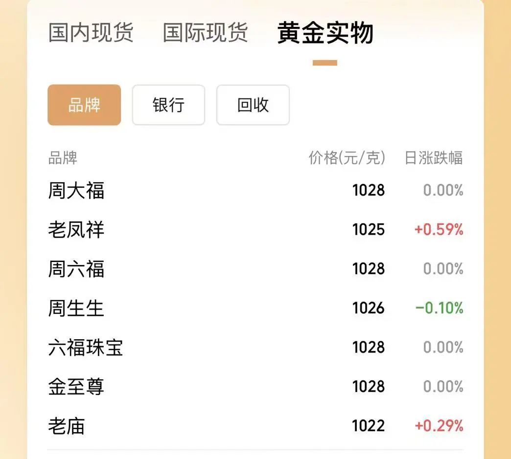 目前,多个品牌金饰价格仍超1000元/克。